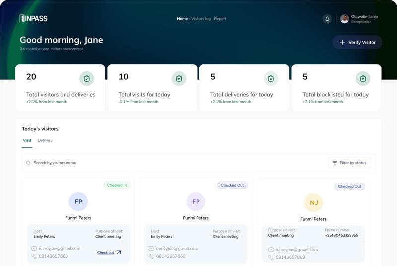 InPass is an advanced visitor management solution designed to streamline visitor check-ins and enhance workplace security. It allows employees and receptionists to efficiently manage visitor access, track appointments, and maintain a seamless reception experience.